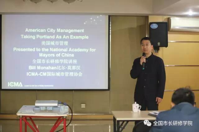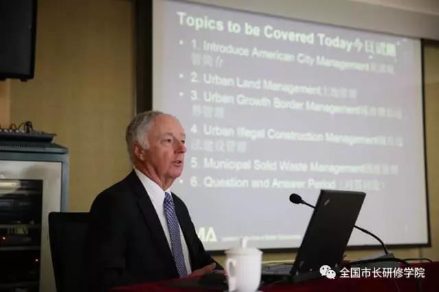 威廉•莫纳汉先生以俄勒冈州、波特兰市为例介绍了美国城市增长边界(UGB)管理、城市土地管理、城市违法建设管理、城市固废管理等方面的法规和做法。国际城市管理协会中国中心顾问、原国家外专局经技司司长王营受邀出席。