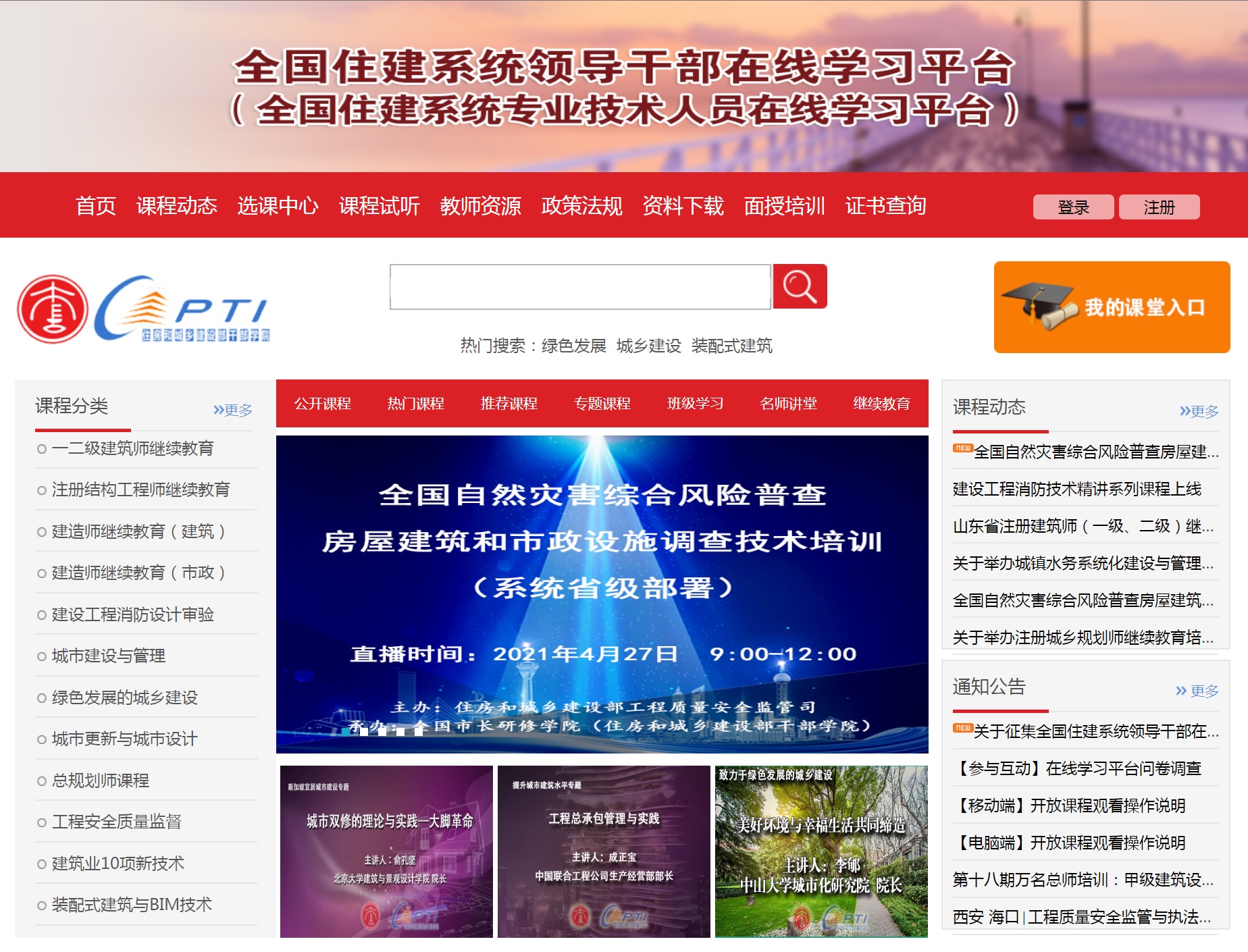 为深入学习贯彻习近平总书记关于大力提高我国自然灾害防治能力重要讲话精神,认真落实国务院办公厅《关于开展第一次全国自然灾害综合风险普查的通知》要求和《全国自然灾害综合风险普查总体方案》部署,及时指导各地房屋建筑和市政设施调查工作,学院受住房和城乡建设部工程质量安全监管司委托,依托我院“全国住建系统领导干部在线学习平台(全国住建系统专业技术人员在线学习平台)”承担了全国房屋建筑和市政设施调查技术培训工作。
