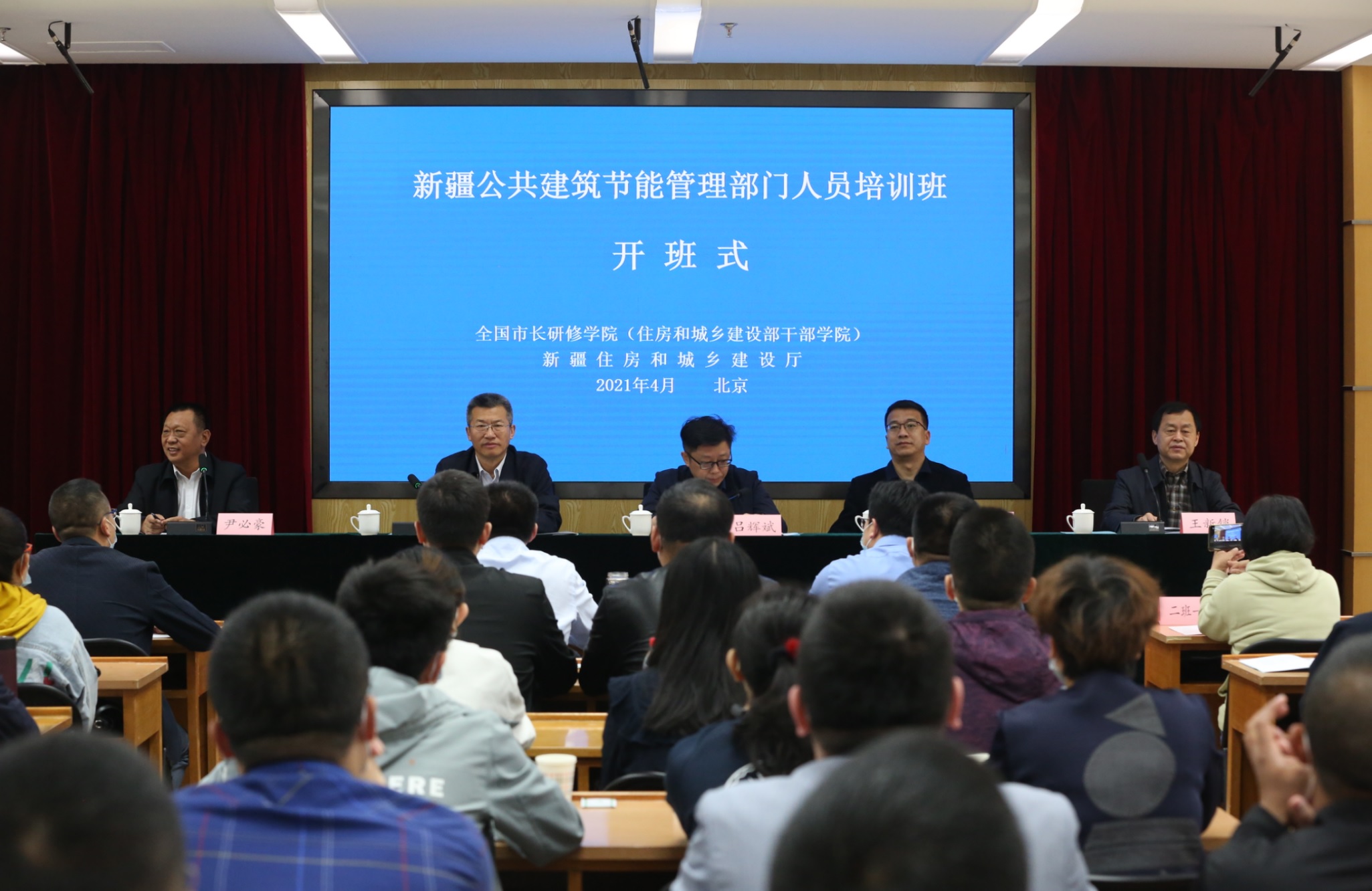 2021年4月25日至28日,全国市长研修学院(住房和城乡建设部干部学院)与新疆住房和城乡建设厅在北京成功举办“新疆公共建筑节能管理部门人员培训班”。全国市长研修学院副院长全河出席开班式,学院副院长逄宗展、新疆住房和城乡建设厅党组成员、副厅长吕辉斌出席开班式并讲话,新疆住房和城乡建设厅建筑节能与科技教育处处长王新锁宣布班委名单,学院工程建设培训部主任尹必豪主持开班式。