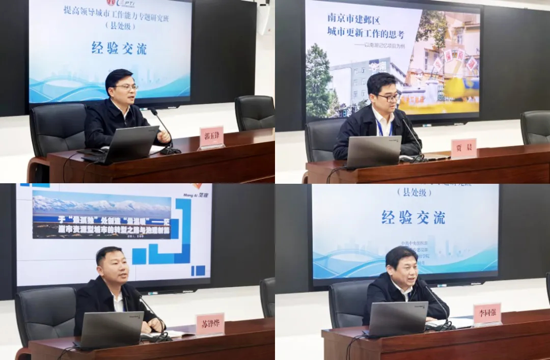 10月29日下午,市长研究班开展了地方经验交流活动。湖北省恩施市市长郭玉峰分享了恩施市“景城共建、主客共享”的城市建设理念;江苏省南京市建邺区区长贾晨以南湖记忆项目为例,分享了建邺区城市更新工作的实践思考;青海省茫崖市市长苏铧烨以“于‘最孤独’处创造‘最温暖’”为题,分享了茫崖市作为偏远资源型城市的转型之路与工作体会;河北省武安市市长李同强与大家交流了担任住建局局长期间参与城市更新工作的实践感受。