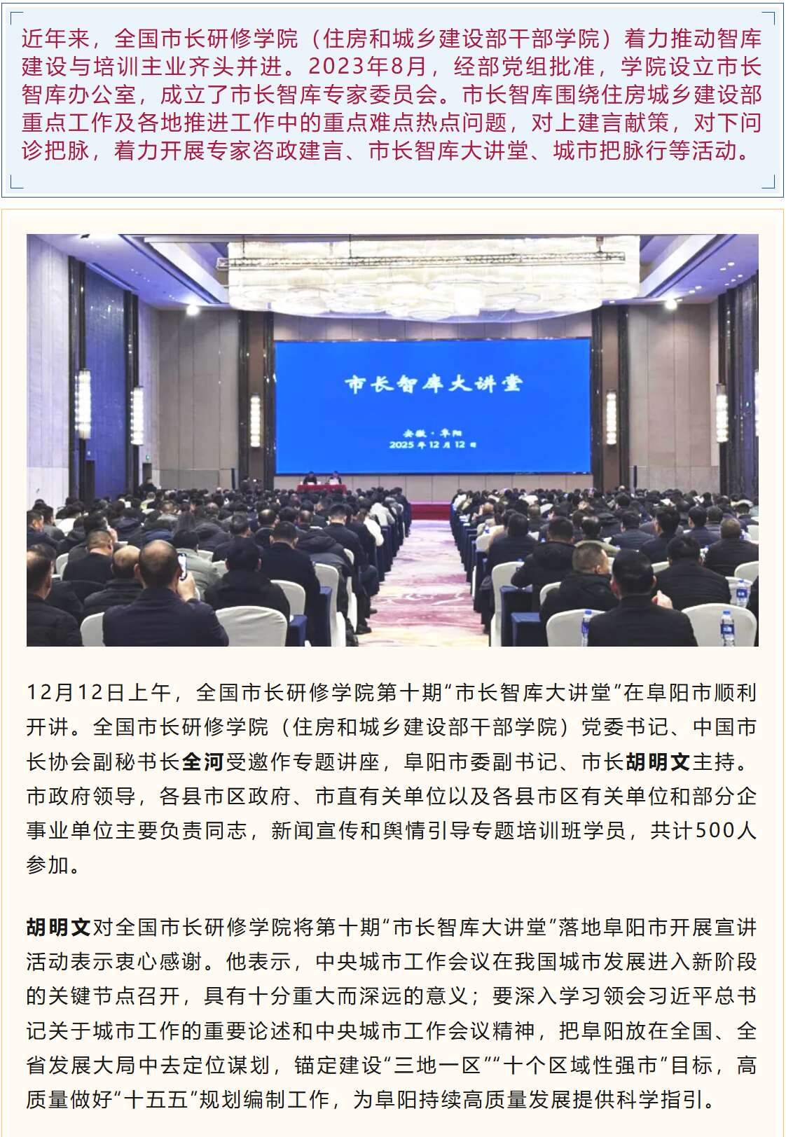 智库信息 | 第十期“市长智库大讲堂”...