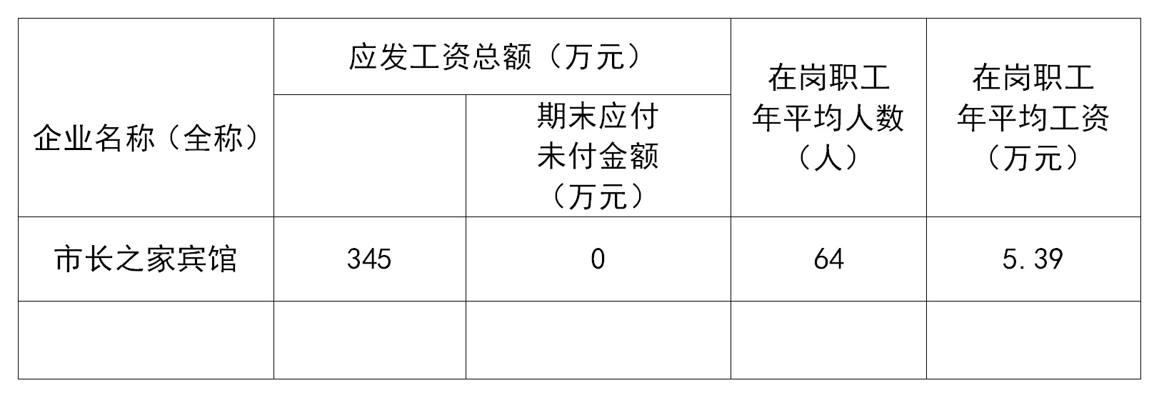 现将全国市长研修学院所监管企业市长之家宾馆 2019 年度工资总额信息披露如下:
